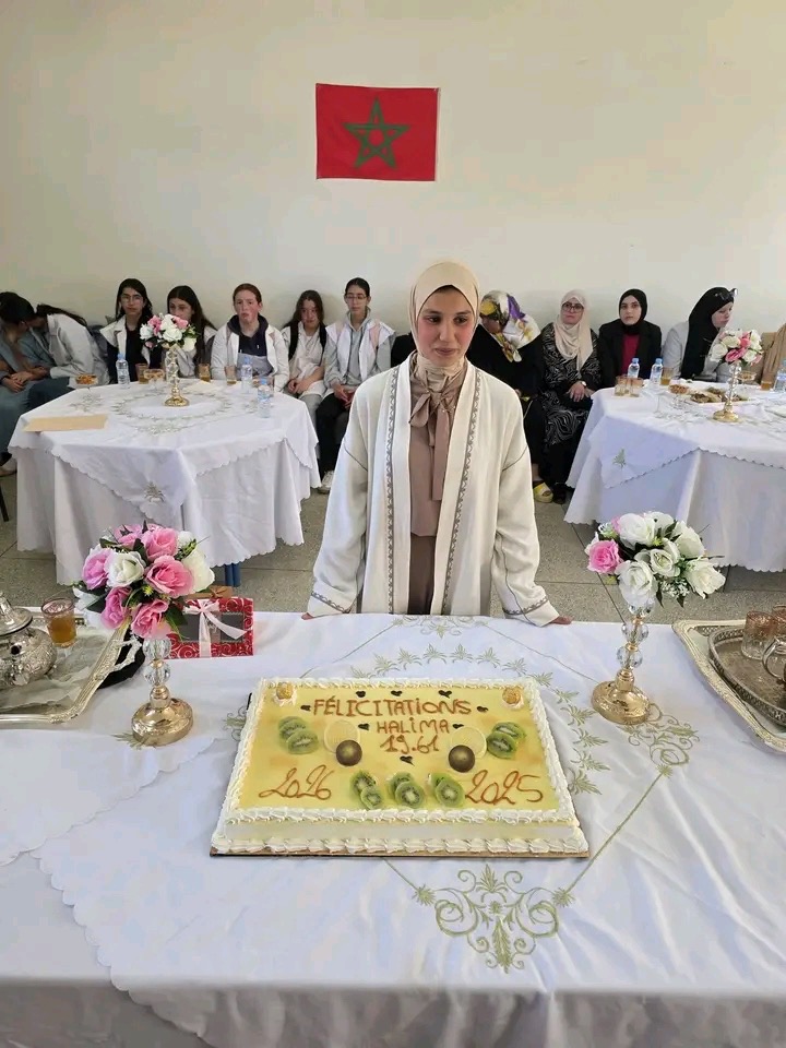 وقد عرفت هذه المناسبة لحظات مؤثرة، خاصة من خلال الكلمات التي وُجهت للتلميذة المتفوقة، والتي عكست عمق التجربة التربوية وشمولية مفهوم النجاح. حيث قدمت زميلاتها كلمات تهنئة بلغات متعددة (العربية، الفرنسية، والإنجليزية)، في تجسيد لروح الانفتاح والتقدير المتبادل داخل الوسط المدرسي.