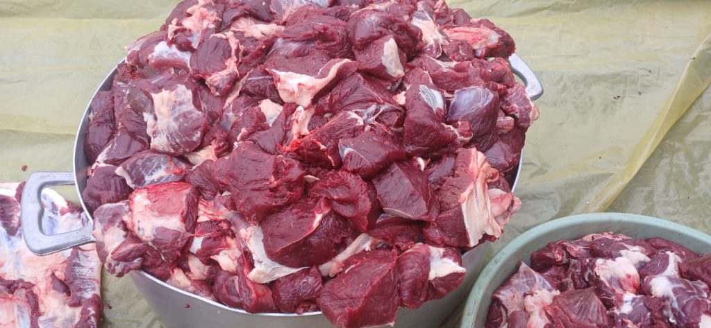 شهد الدوار خلال الاحتفال توزيع لحم البقر الذي ذُبح خصيصًا لهذه المناسبة، في خطوة رمزية تجمع بين الاحتفاء الديني والتكافل الاجتماعي.