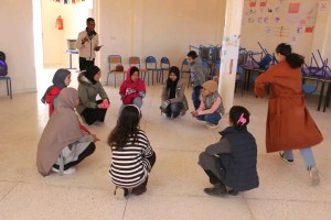 ورشة بناء الثقة: وتتعلق بتوجيه مشارك مغمض العينين للجلوس فوق كرسي يحدد المؤطر من خلال اللمس بدون كلمات.