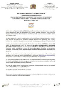 وأشارت إلى أن المنظمات التي سبق لها إيداع ملفاتها خلال النسخ السابقة من برنامج «مؤازرة» يمكنها الولوج إلى المنصة من أجل استكمال أو تصحيح أو تحيين ترشيحاتها، بما يتلاءم مع معايير وشروط النسخة السابعة.