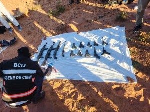تطبيقاً لبروتوكولات الأمن والسلامة، تم الاستعانة بدوريات للكلاب المدربة وآليات للكشف عن المعادن، مما أسفر عن العثور على شحنة من الأسلحة والذخيرة النارية المدفونة. وقد شملت المحجوزات سلاحي كلاشينكوف، بندقيتين، وعشر مسدسات، بالإضافة إلى كمية كبيرة من الخراطيش.
