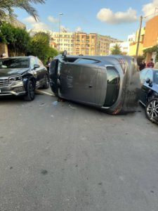 وأفاد شهود من عين المكان أن المعني بالأمر فقد السيطرة على السيارة بعد لحظات من انطلاقه، ما أدى إلى اصطدامه بثلاث سيارات أخرى كانت مركونة في نفس الزقاق، قبل أن تنقلب السيارة على جانبها الأيسر، مُخلفة خسائر مادية فادحة، وذعراً كبيراً وسط السكان.
