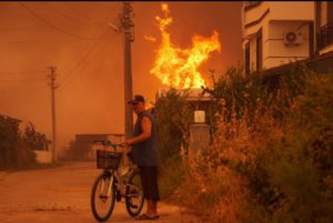 تواصلت اليوم الإثنين حرائق غابات عنيفة في ولاية إزمير غرب تركيا، مهددةً أحياء سكنية ومناطق صناعية، في وقت تضرب فيه موجة حر شديدة أنحاء واسعة من أوروبا، وسط تحذيرات من تفاقم الوضع بفعل التغيرات المناخية.