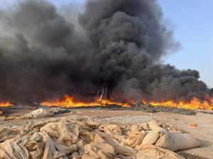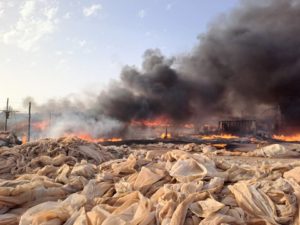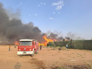 حريق مهول يلتهم مستودعاً للمتلاشيات الفلاحية بطريق تدارت سيدي بيبي