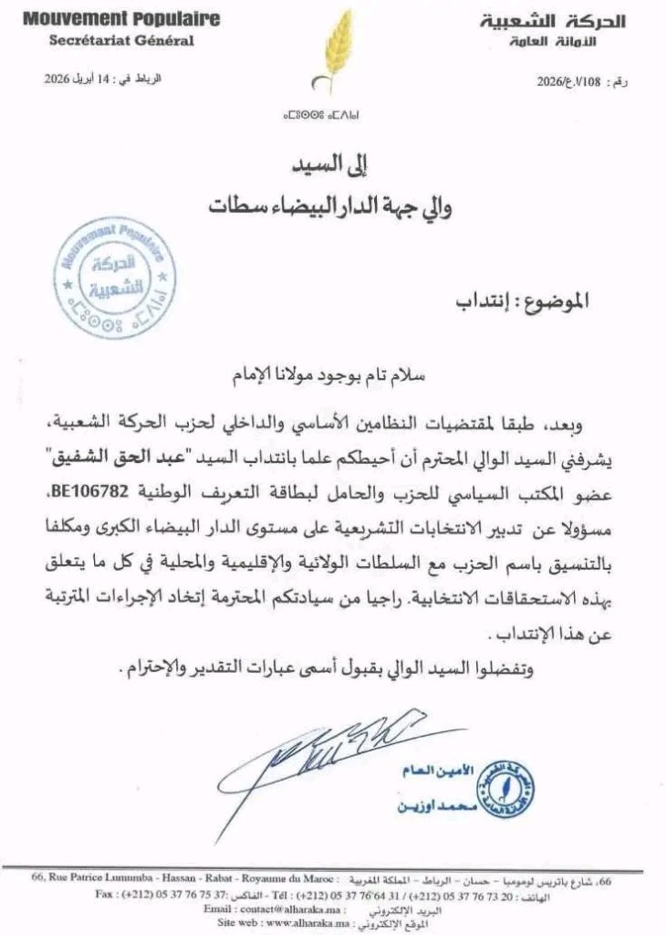 مع اقتراب موعد الاستحقاقات الانتخابية المرتقبة لسنتي 2026 و2027، بدأت ملامح التحركات السياسية تتشكل على مستوى عدد من المناطق، من بينها سيدي معروف أولاد حدو التابعة لعمالة مقاطعة عين الشق. في هذا السياق، برز اسم عبد الحق الشفيق، الذي تسلم رسميًا الإذن من محمد أوزين، الأمين العام لحزب الحركة الشعبية، للإشراف على ترتيبات المرحلة الانتخابية المقبلة، في خطوة تعكس انطلاق دينامية سياسية جديدة بالجهة.