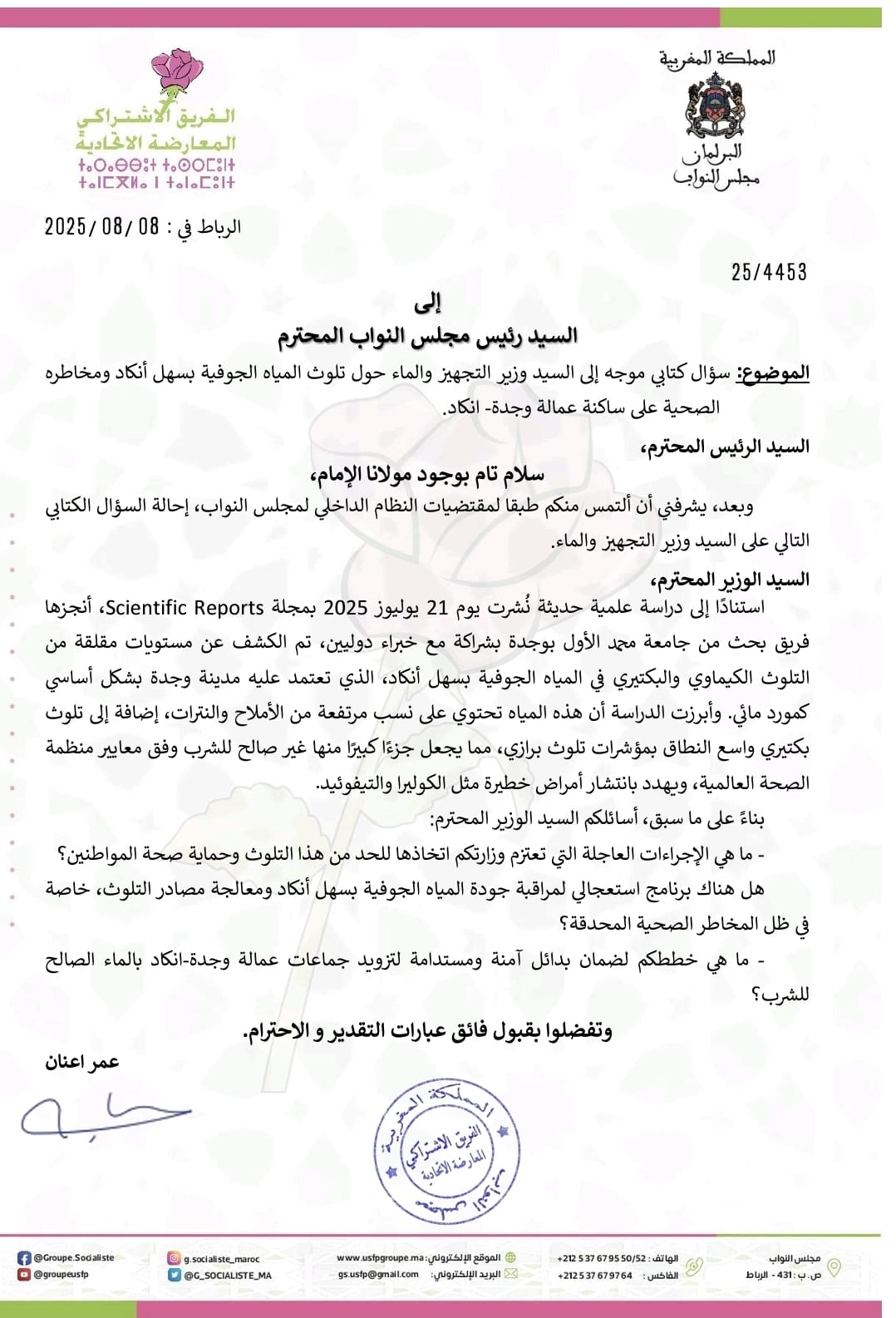 وجدة : تلوث المياه الجوفية بسهل أنكاد يصل للبرلمان، والمعارضة الإتحادية تراسل الويز المختص