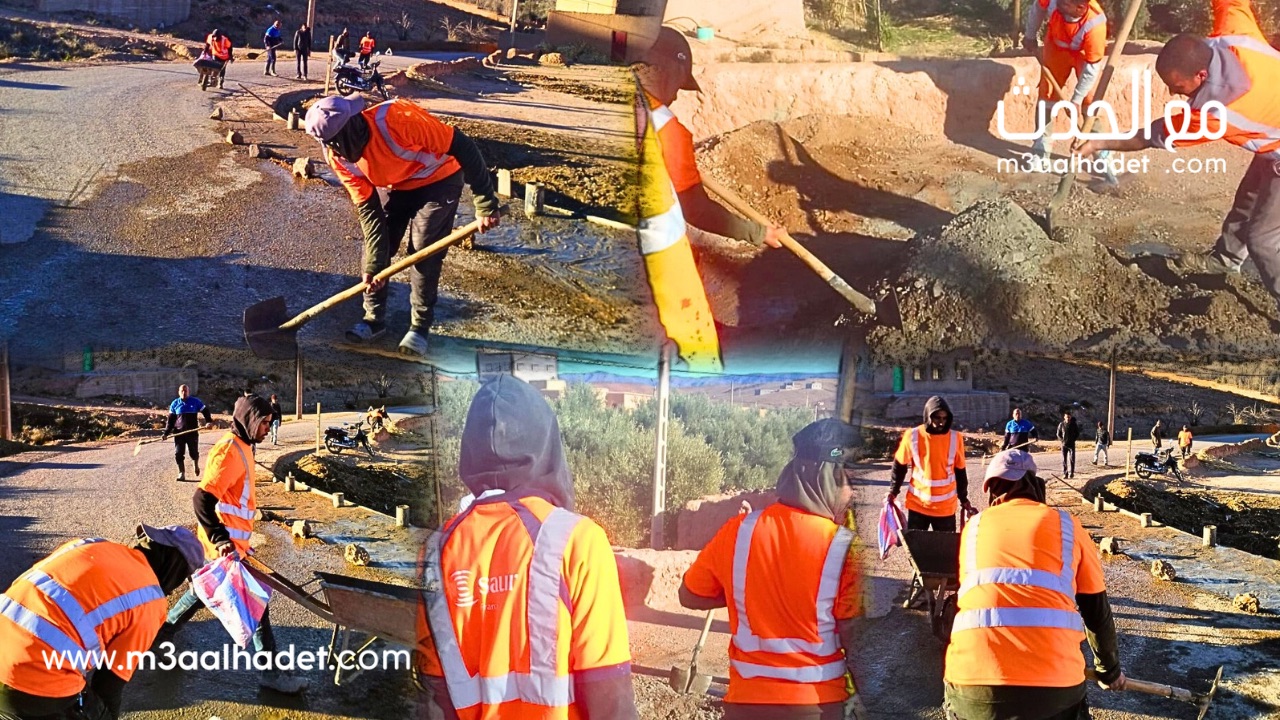 شباب أيت حمودن يتقدمون بمبادرة تطوعية لترميم الطريق بالإسمنت