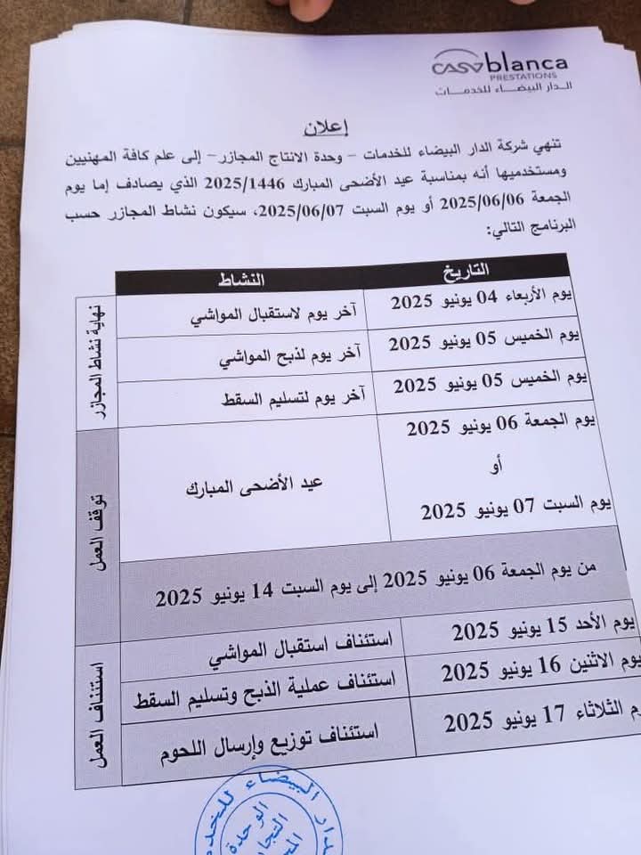 شركة الدار البيضاء للخدمات تكشف برنامج المجازر بمناسبة عيد الأضحى المبارك لسنة 2025