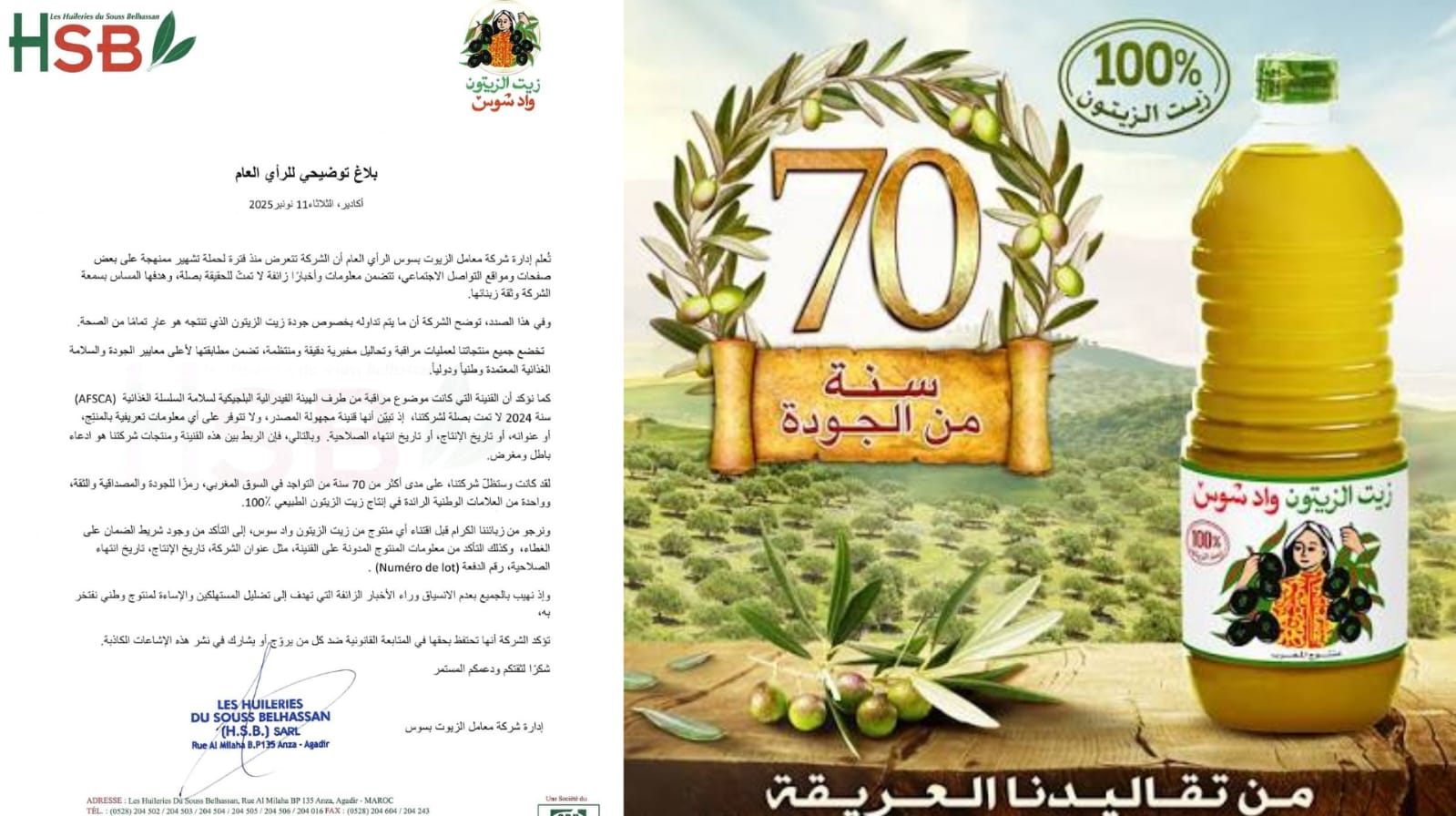 زيت واد سوس تردّ بقوة: لن نسمح بتشويه سمعة 70 سنة من المصداقية والجودة