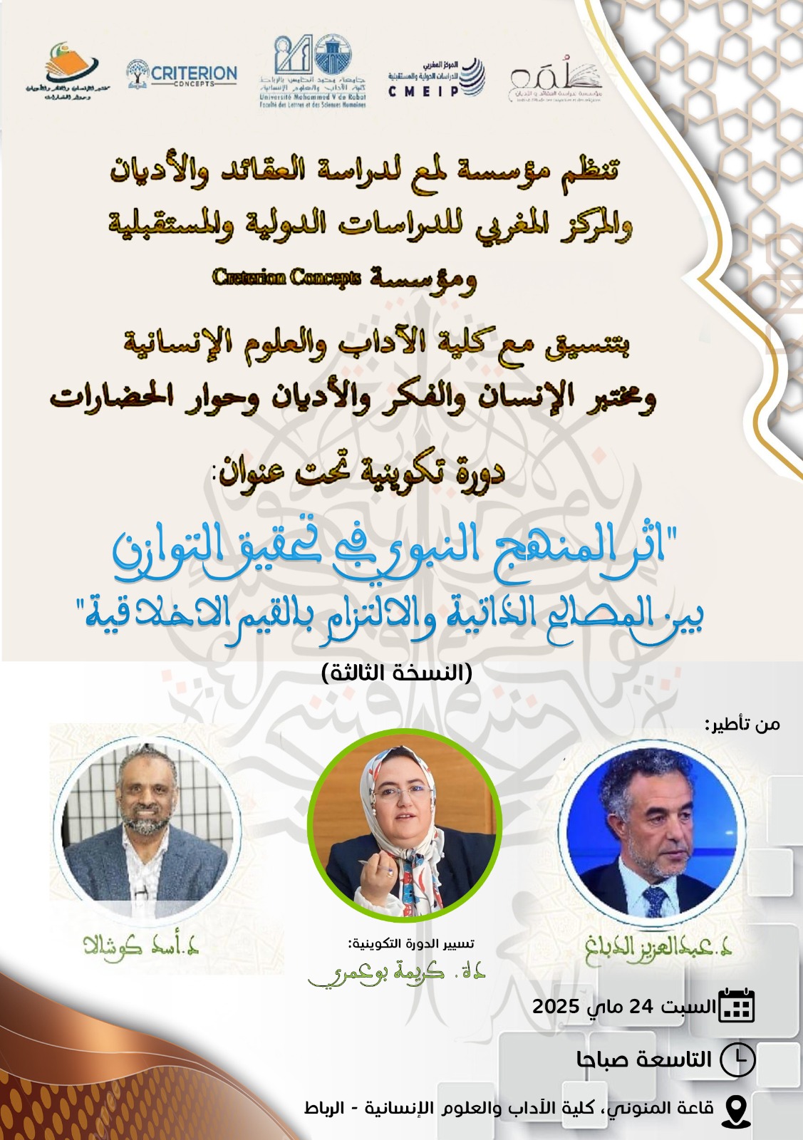 تقرير الدورة التكوينية المنظمة بكلية الآداب والعلوم الإنسانية -الرباط تحت عنوان “أثر المنهج النبوي في تحقيق التوازن بين المصالح الذاتية والالتزام بالقيم الأخلاقية”