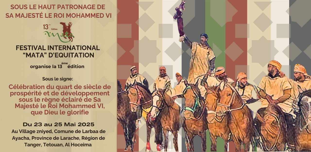 احتفال بربع قرن من الازدهار والتنمية تحت القيادة الرشيدة لصاحب الجلالة الملك محمد السادس، نصره الله وأيده شعار المهرجان الدولي “مــاطــا” للفروسية بالحسيمة في دورته الثالثة عشرة
