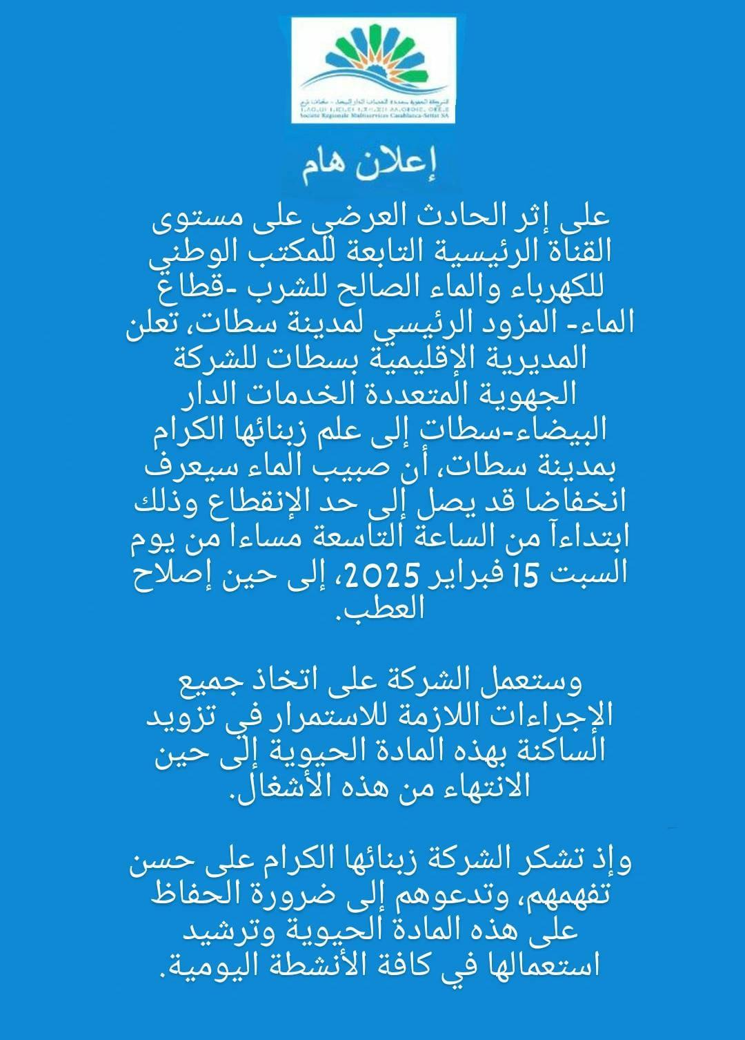 انخفاض صبيب الماء في مدينة سطات بسبب حادث عرضي