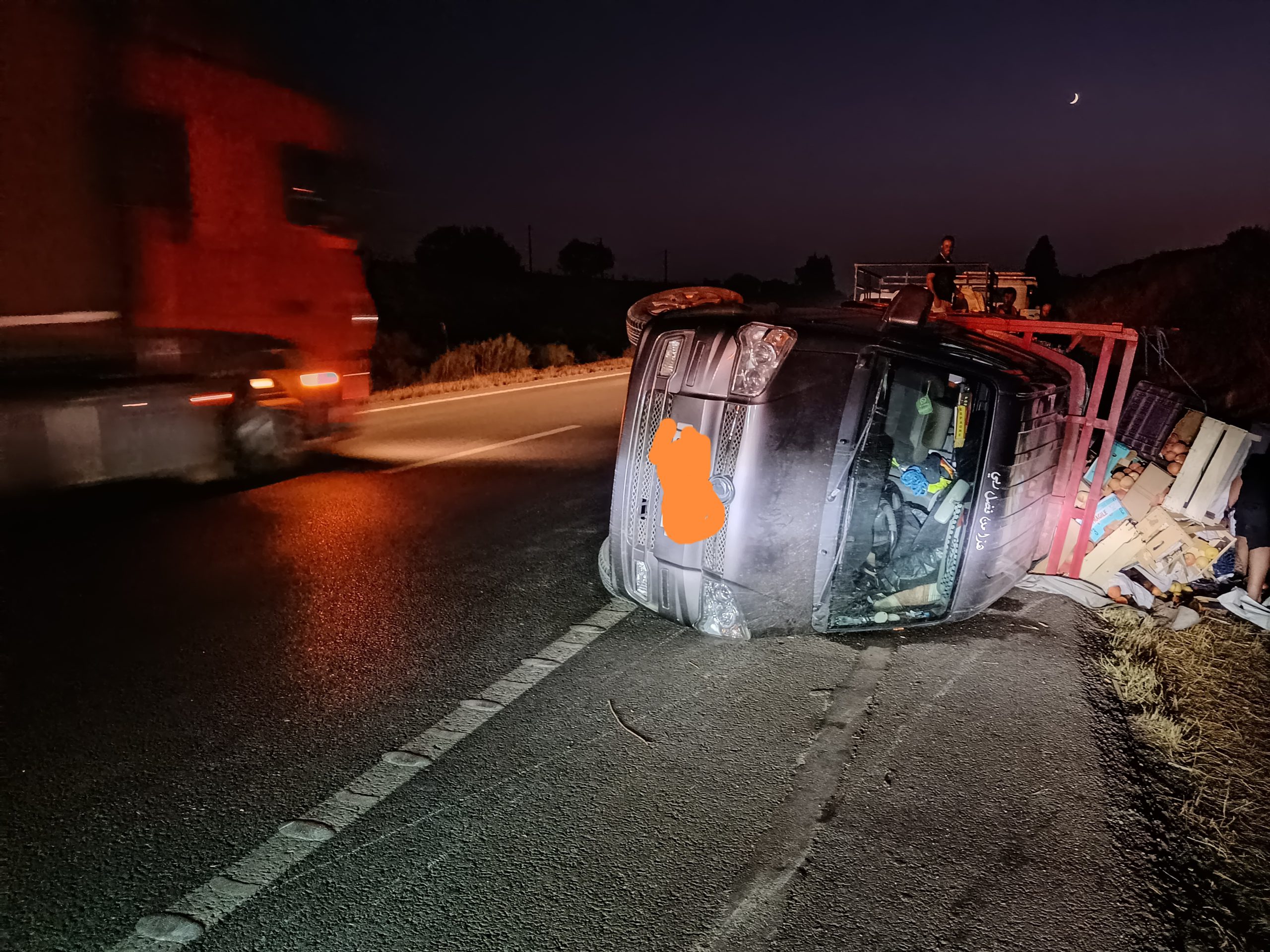 انقلاب شاحنة محملة بالتفاح قرب وسلان وإصابة السائق بجروح خطيرة