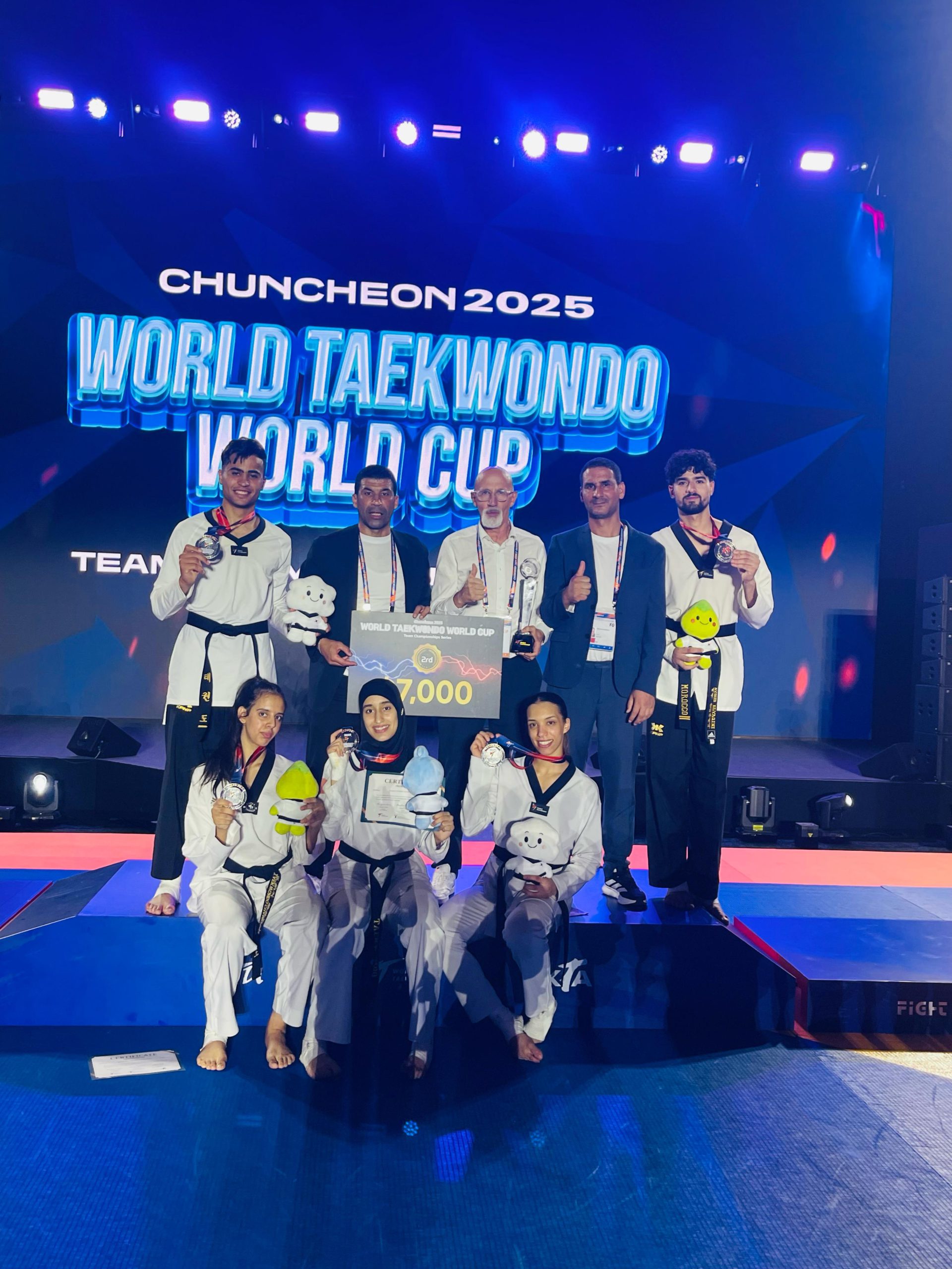 المنتخب الوطني فئة فريق مختلط للتايكوندو يتوج بفضية في كأس العالم للفرق بجمهورية كوريا.