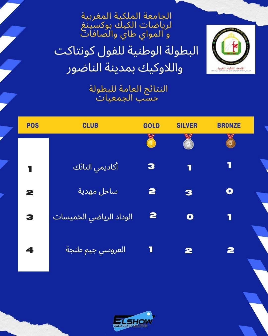 جمعية “التائك أكاديمي” تتصدر بطولة المغرب لفول كونتاكت ولاوكيك 2025 بالناظور