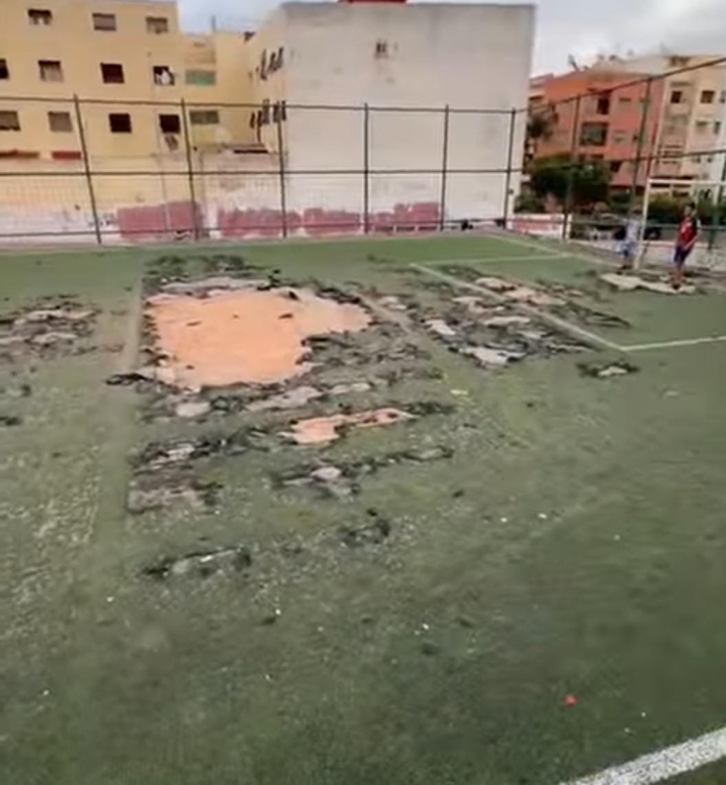 ملعب القرب بشارع تيشكا بحي الشريفة… فضاء رياضي يتحول إلى حالة كارثية تستدعي التدخل العاجل