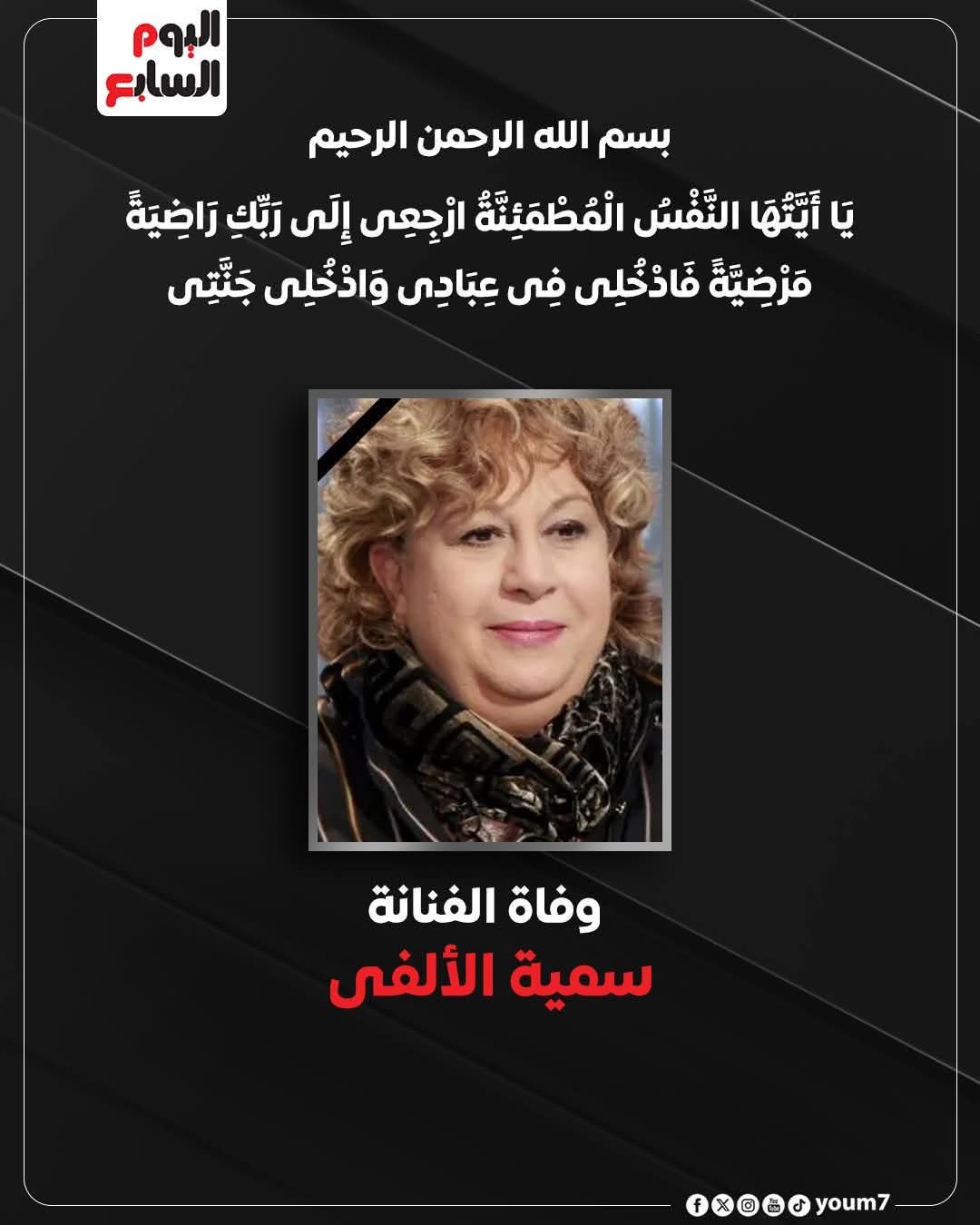 وفاة الفنانة سمية الألفي عن عمر 72 سنة بعد صراع طويل مع المرض