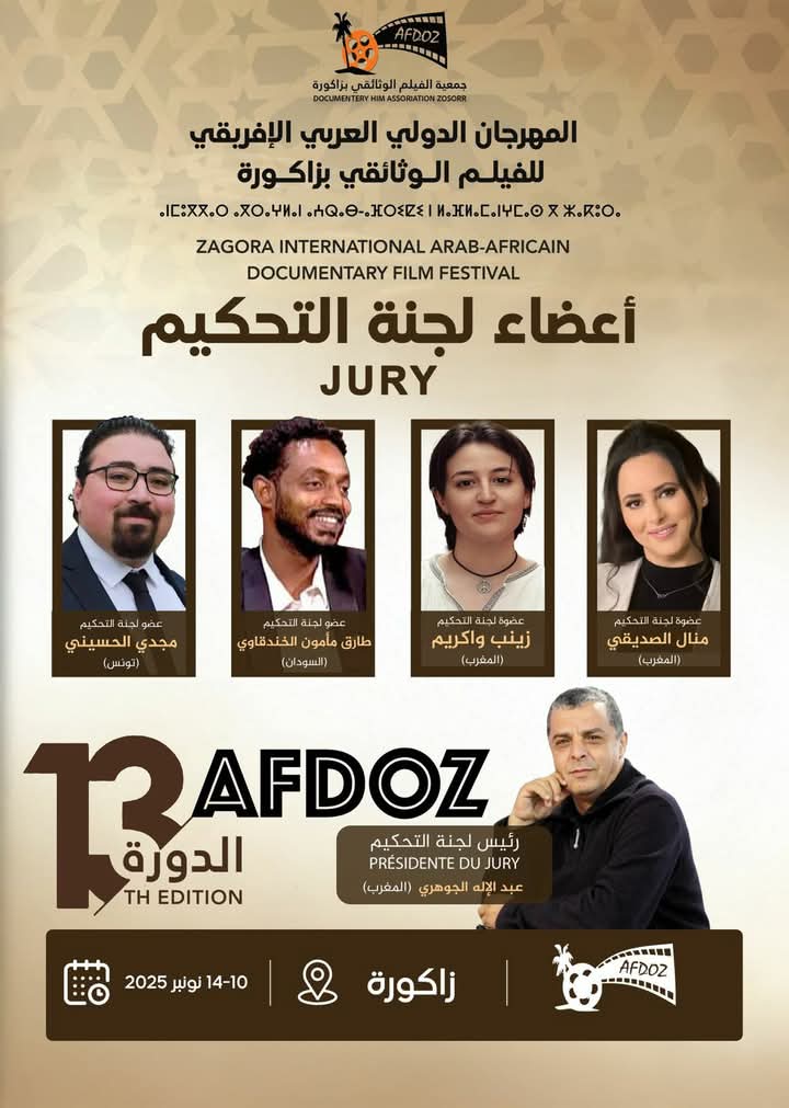 بدعم من المركز السينمائي المغربي جمعية الفيلم الوثائقي بزاكورة تعلن عن الدورة الثالثة عشرة للمهرجان الدولي العربي الافريقي للفيلم الوثائقي.