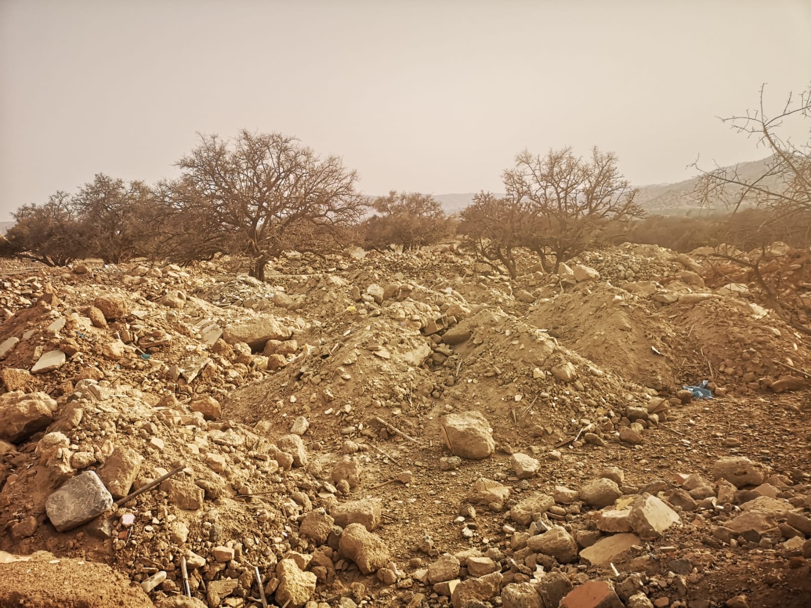 انتهاك بيئي خطير في غابة تالكجونت بإقليم تارودانت: رمي بقايا الزلزال يهدد أشجار الأركان