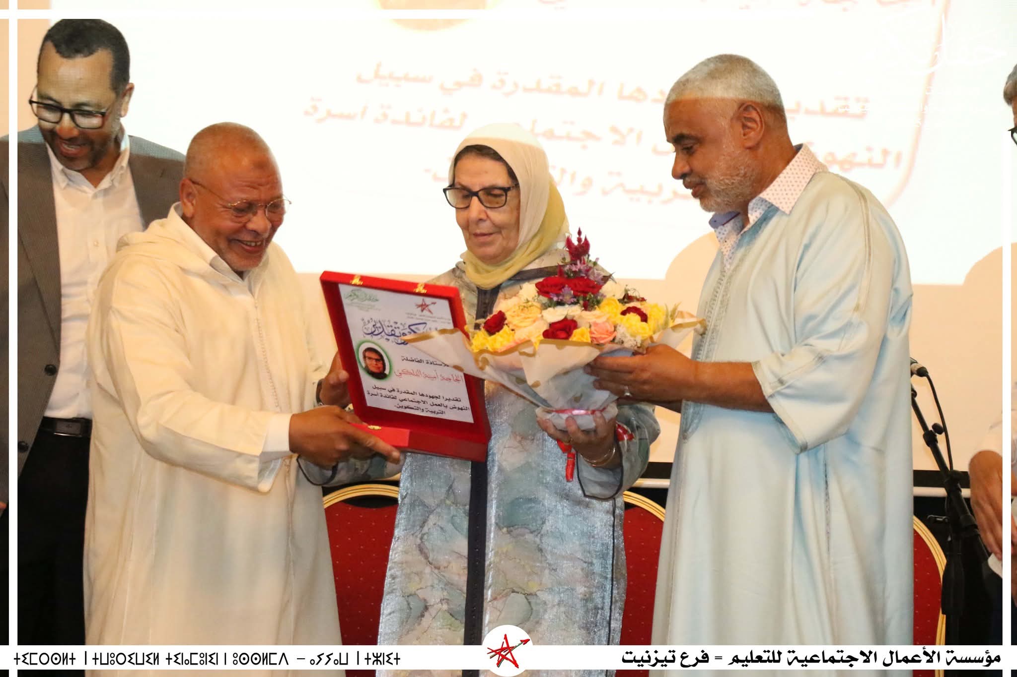 تكريم الحاجة امينة الفلكي،قيدومة العمل الاجتماعي بمؤسسة الاعمال الاجتماعية للتعليم بمراكش.