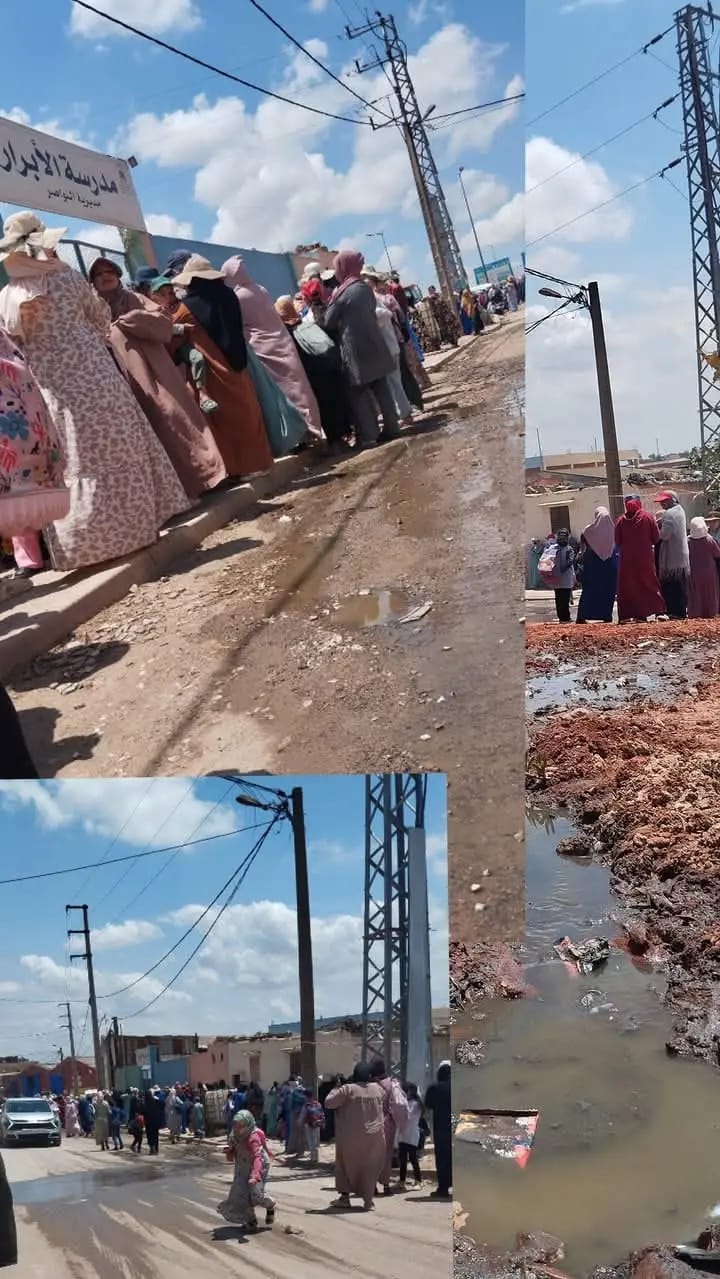 مدرسة الأبرار الابتدائية بالمكانسة الجنوبية في إقليم النواصر محاصرة بالمياه العادمة