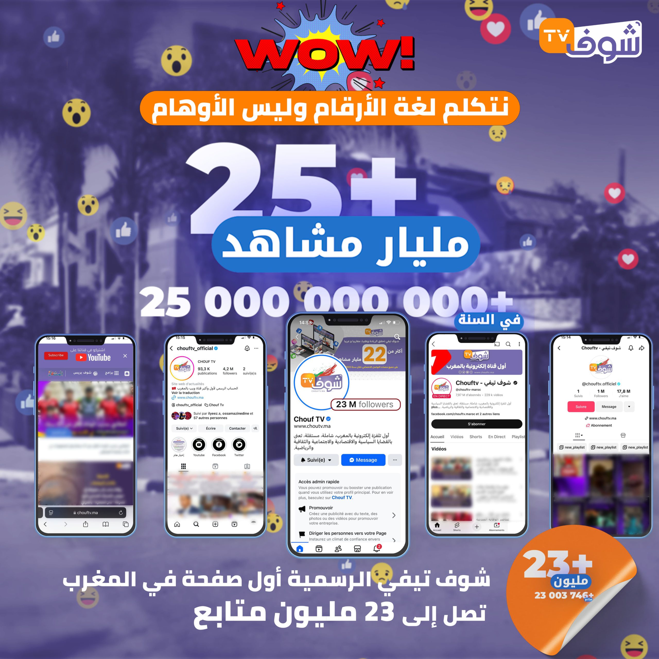 الثلاثاء 08 يوليو 2025 - 12:00 شوف تيفي”.. إنجاز غير مسبوق يكرّس ريادتها إعلاميًا على الصعيدين الوطني والقاري