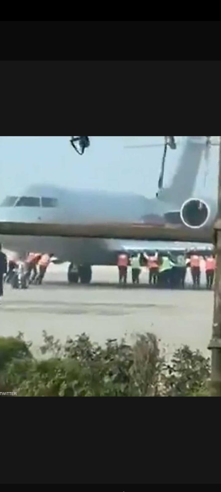 موظفون يجرون طائرة ركاب عملاقة بأيديهم العارية في مطار هندي